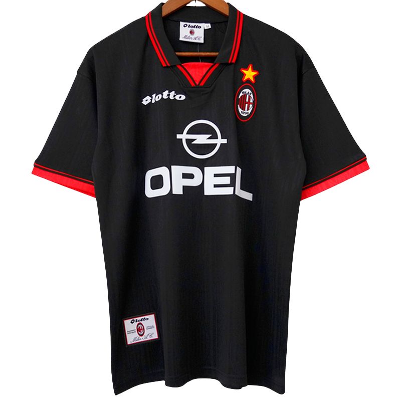 Plongez dans l’histoire avec le maillot fourth AC Milan 1997-1998 par Lotto, un modèle noir audacieux avec le sponsor Opel. Ce design rare, porté lors de matchs spécifiques, est un collector prisé des fans Rossoneri. Confortable et iconique, il est disponible sur kickoff-store.com