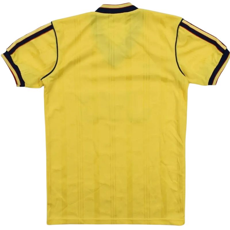 Le maillot extérieur d’Arsenal de 1986-1988, conçu par Adidas, est un classique rétro intemporel arborant un design jaune éclatant avec de subtiles rayures verticales et des bordures rouge-bleu sur le col en V et les poignets. Porté lors de la saison victorieuse de la League Cup 1986-87, ce maillot incarne l’héritage des Gunners avec son style audacieux et ses petits motifs de canon. Idéal pour les collectionneurs et les fans, c’est une pièce nostalgique de l’histoire d’Arsenal, mêlant élégance vintage et fierté d’équipe. Disponible dès maintenant pour revivre les jours de gloire !