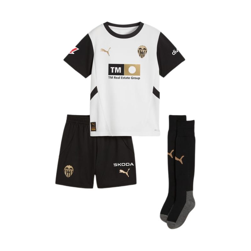Le nouveau maillot kit enfant FC Valence domicile 24/25, conçu sous le slogan “FAISONS-LE BRILLER”, ravive l’esprit, l’audace et la passion de toujours donner le meilleur de soi-même. Un design pensé comme un élément de fierté pour les joueurs et les supporters, où nos couleurs traditionnelles sont sublimées par des détails dorés, tels que l’écusson, symbolisant le succès atteint avec ce triplé inoubliable.