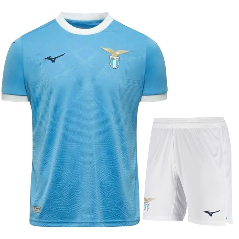 Initiez les jeunes fans avec le kit enfant Lazio Rome domicile 2025-26 ! Ce maillot Mizuno bleu ciel à motif géométrique, accompagné d’un short assorti, célèbre l’héritage romain du club. Idéal pour encourager la Lazio avec style. Disponible en tailles enfant sur Kick Off Store.