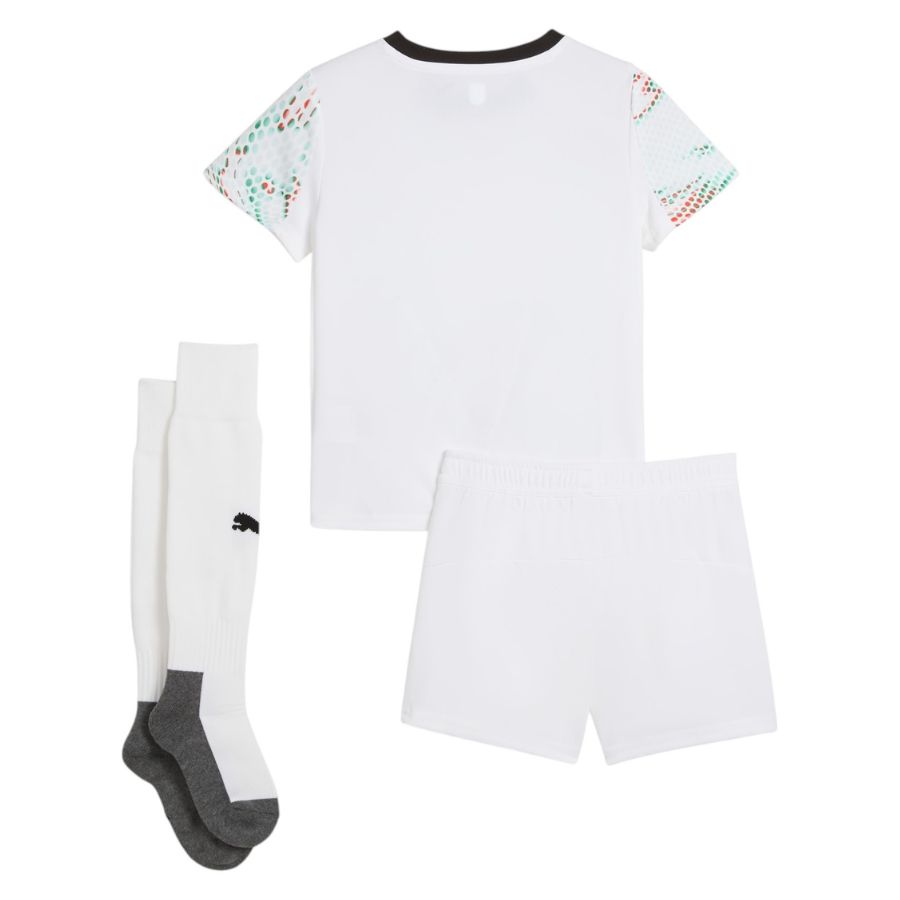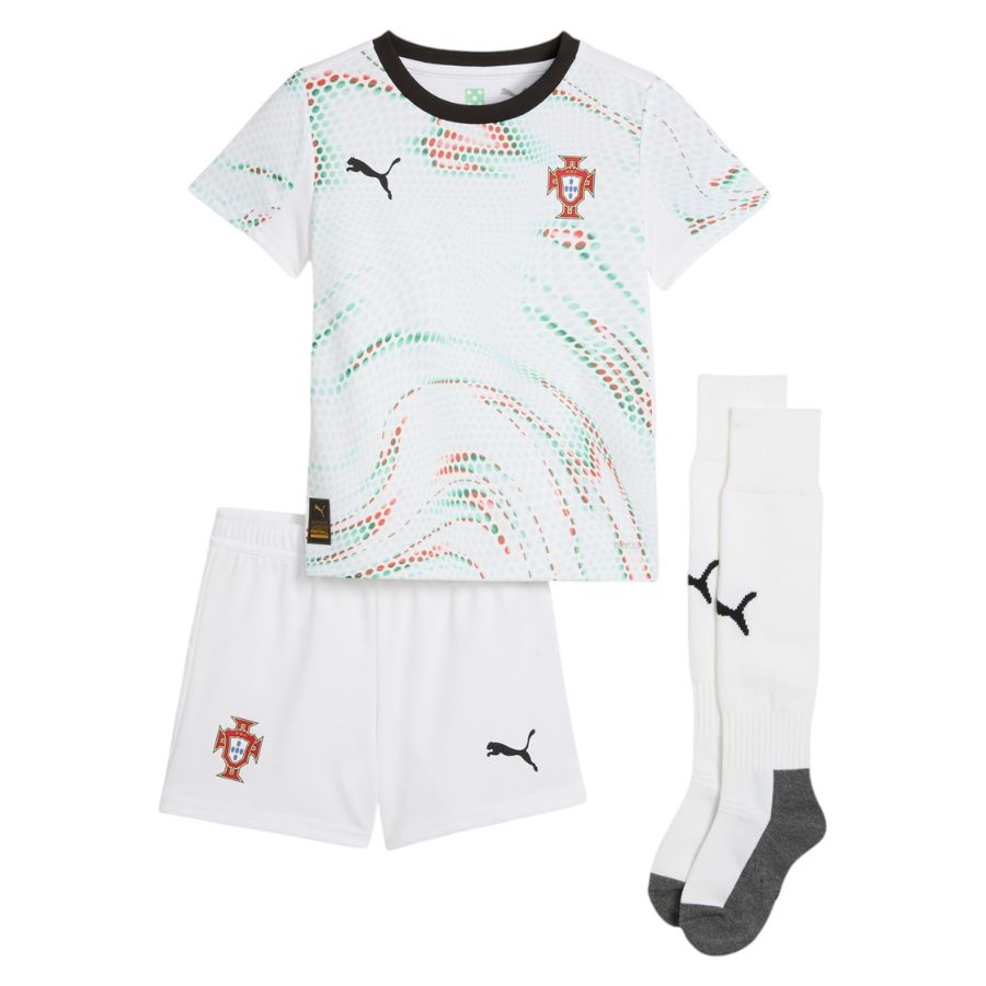 Plongez dans la tradition et l’innovation avec le Maillot Kit Enfant Portugal Extérieur 2025/2026, signé Puma pour la première fois depuis le partenariat avec Nike. Ce maillot adopte un design audacieux qui rend hommage au riche héritage portugais, avec des motifs inspirés des azulejos, les célèbres carrelages portugais. Les couleurs dominantes sont le vert et le rouge, symboles de la nation, avec des touches de blanc pour une esthétique moderne. Fabriqué avec la technologie DRYCELL, il offre une gestion optimale de la transpiration, assurant confort et performance sur le terrain ou dans les tribunes. Le logo de la Fédération Portugaise de Football et celui de Puma s’unissent sur ce maillot, marquant une nouvelle ère pour la Seleção. Personnalisez-le avec le nom et le numéro de votre joueur favori pour un soutien personnalisé. Portez ce maillot pour célébrer la fierté et l’esprit compétitif de l’équipe nationale portugaise.