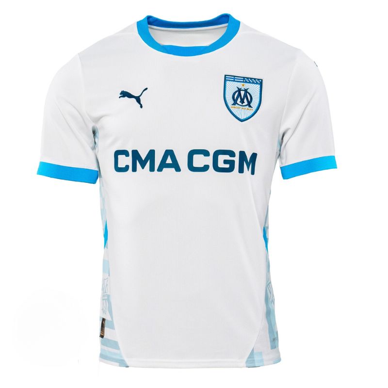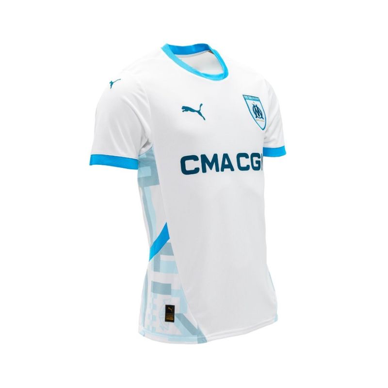 Les motifs imprimés sur les côtés représentent les drapeaux qui arborent le stade à chaque match. L’inscription « Portez » qui figure au niveau du col est aussi un hommage aux supporters : ici à l’OM, les supporters, c’est le 12eme homme, comme nulle part ailleurs.