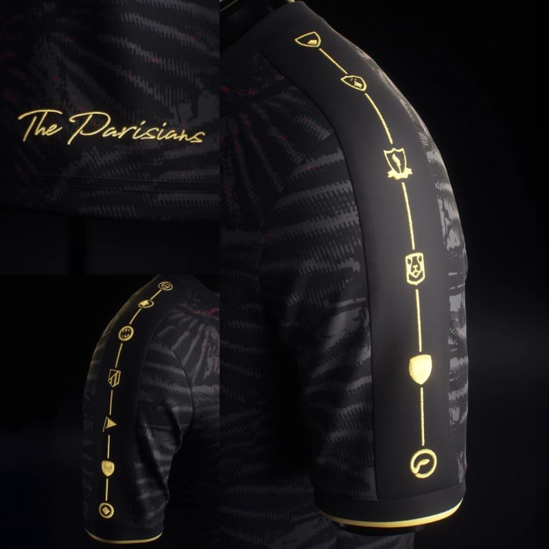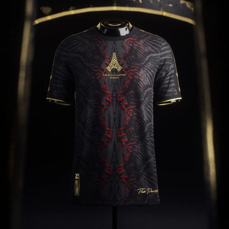 Découvrez le maillot PSG “The Parisians” Champions 2025 par Comma, célébrant la victoire historique en Ligue des Champions. Avec son design audacieux noir et rouge inspiré des ailes, un blason Tour Eiffel brodé et une liste dorée des clubs affrontés, ce maillot en édition limitée est parfait pour les fans passionnés.